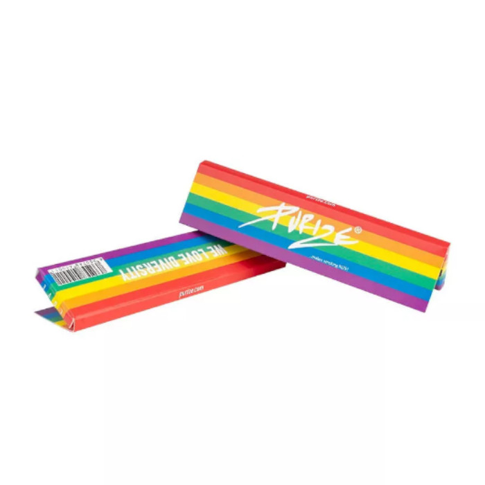 Bletki Purize Rainbow King Size Slim zapakowane są w opakowaniu o unikatowej kolorystyce tęczowej.